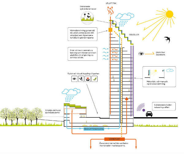 Si tratta di una delle tre proposte presentate per celebrare i 100 anni della HSB Stockholm, una delle più importanti imprese di costruzione del paese, attraverso la realizzazione della nuova sede in perfetto stile green building.
