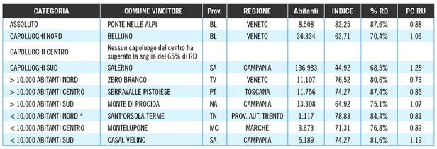 Il vincitore, premiato a Roma, è quindi Ponte nelle Alpi, 8508 abitanti che hanno saputo dire addio al cassonetto e che per il quarto anno si aggiudicano il primato italiano.