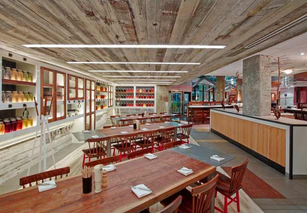 E’ la Farmers Fishers Bakers, un ristorante costruito con materiali riciclati, reinventati a nuova vita per creare un ambiente rustico, ma curato che rende davvero omaggio alla cultura agricola americana.