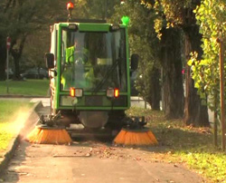 Sabato scorso stavamo transitando per una via di Milano, quando la Signora K mi ha fatto notare un mezzo come quello della foto che, con un addetto a piedi puliva il marciapiede, per poi far raccogliere i rifiuti dalla spazzatrice.