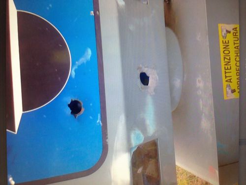 Nell’asetticità dei contratti tra Comuni e noleggiatori di autovelox, si parla di “atti di vandalismo”. Tradotto in pratica, è anche questo. I buchi che vedete nelle foto sono causati da proiettili.