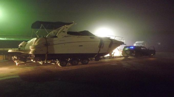 Guardate la foto: c’è un’auto (un 4×4) che traina una barca lunga 15 metri, alta quattro e larga tre.