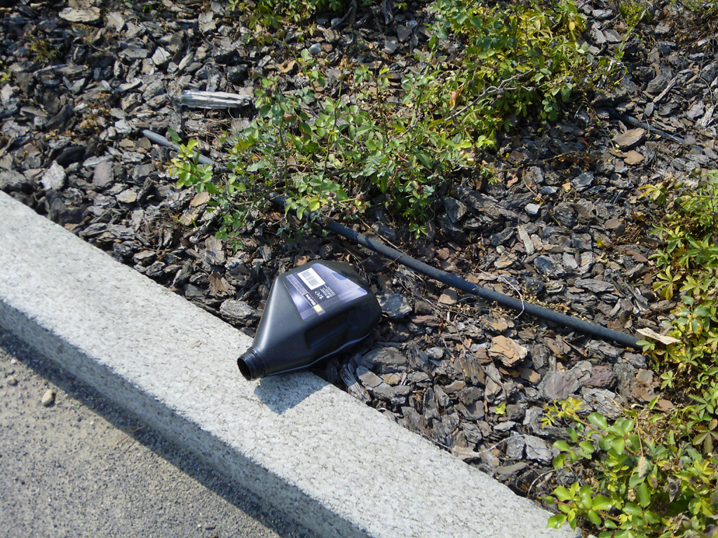 Tempo fa, durante l’abituale passeggiata dopo pranzo ho gettato l’occhio in un’aiuola e che vedo? Un paio di confezioni di plastica di olio per l’auto…