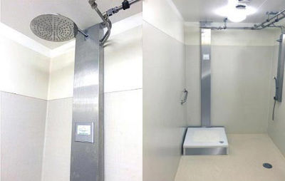 Il sistema utilizza solo 5 litri d’acqua per una doccia di 10 minuti (contro i 150 litri tradizionali) assicurando inoltre maggiore igiene e maggior comfort.