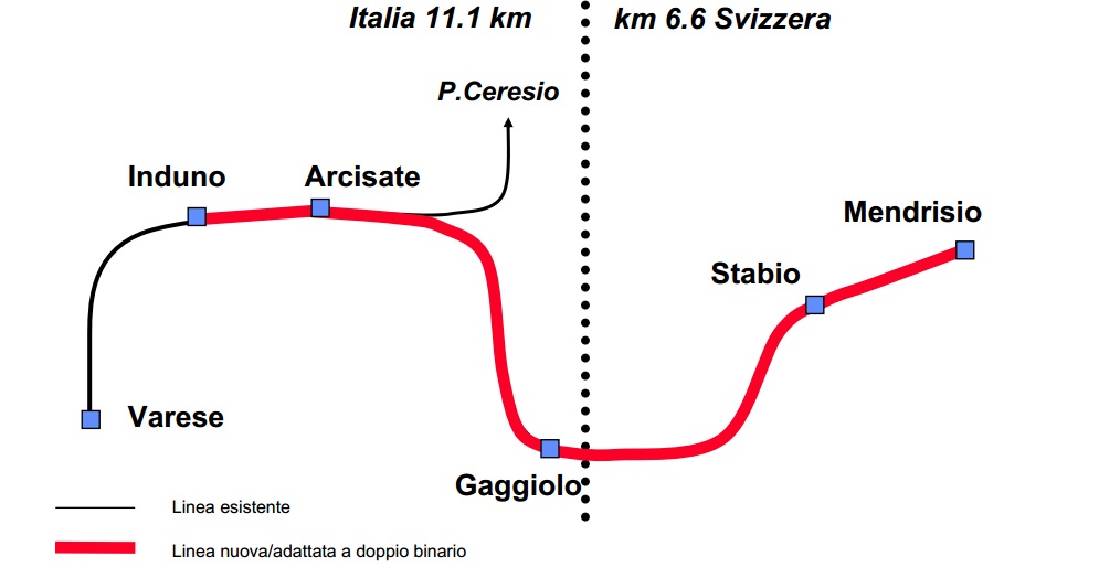 Come scrivono sul sito delle Ferrovie Svizzere: La tratta di 17.7 km, 6.6 dei quali su territorio svizzero, collegherà fra di loro gli agglomerati di Bellinzona, Lugano, Chiasso-Como e Varese ed interessa un bacino di circa 600 mila abitanti.