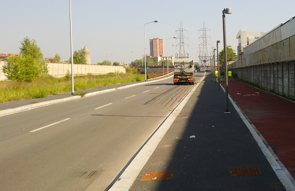 Nella foto qua sotto si può vedere il marciapiede DOPO il passaggio degli operatori dell’Amsa (un camion + 2 uomini a piedi).