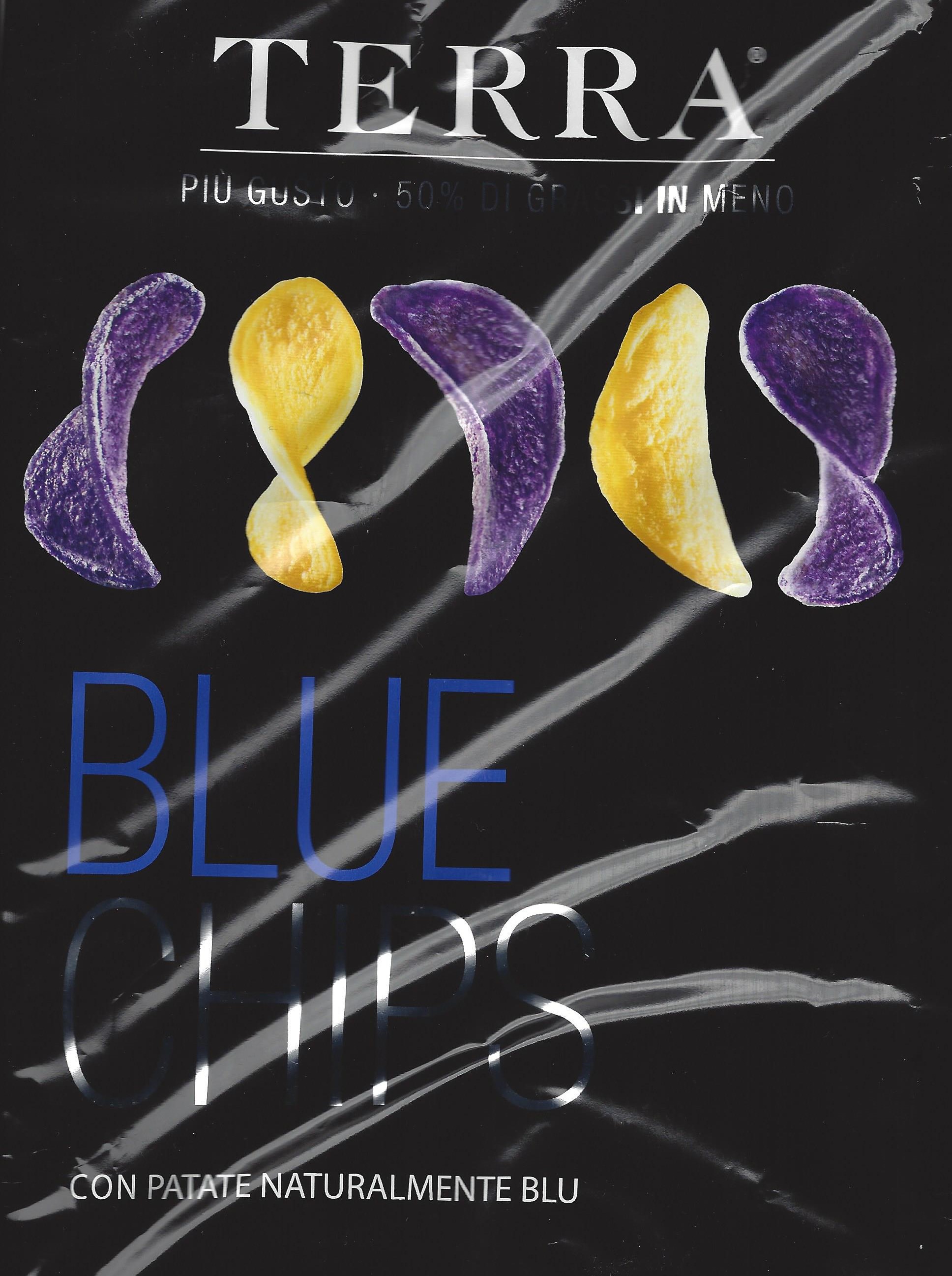 Quando sullo scaffale ho visto queste patatine ho subito letto gli ingredienti, ma non ho notato che queste patate naturalmente blu (come specificato sulla confezione) in realtà sono simili alle antiche varietà di patate del Sudamerica.