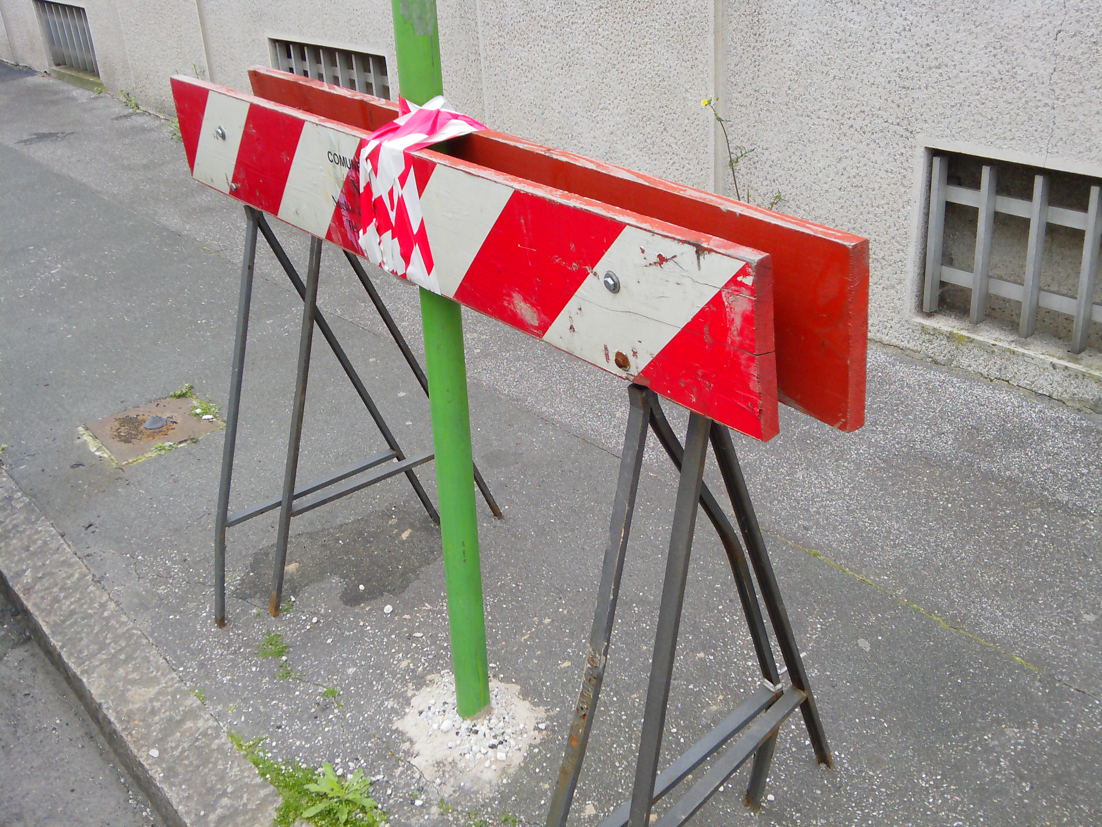 12 marzo 2015: Sono passati 10 mesi ed i cavalletti sono sempre lì, ma qualcuno li ha girati, per cui ora ingombrano il marciapiede e sono di ostacolo per le auto che devono parcheggiare.
