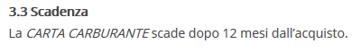La CARTA CARBURANTE scade dopo 12 mesi dall’acquisto.