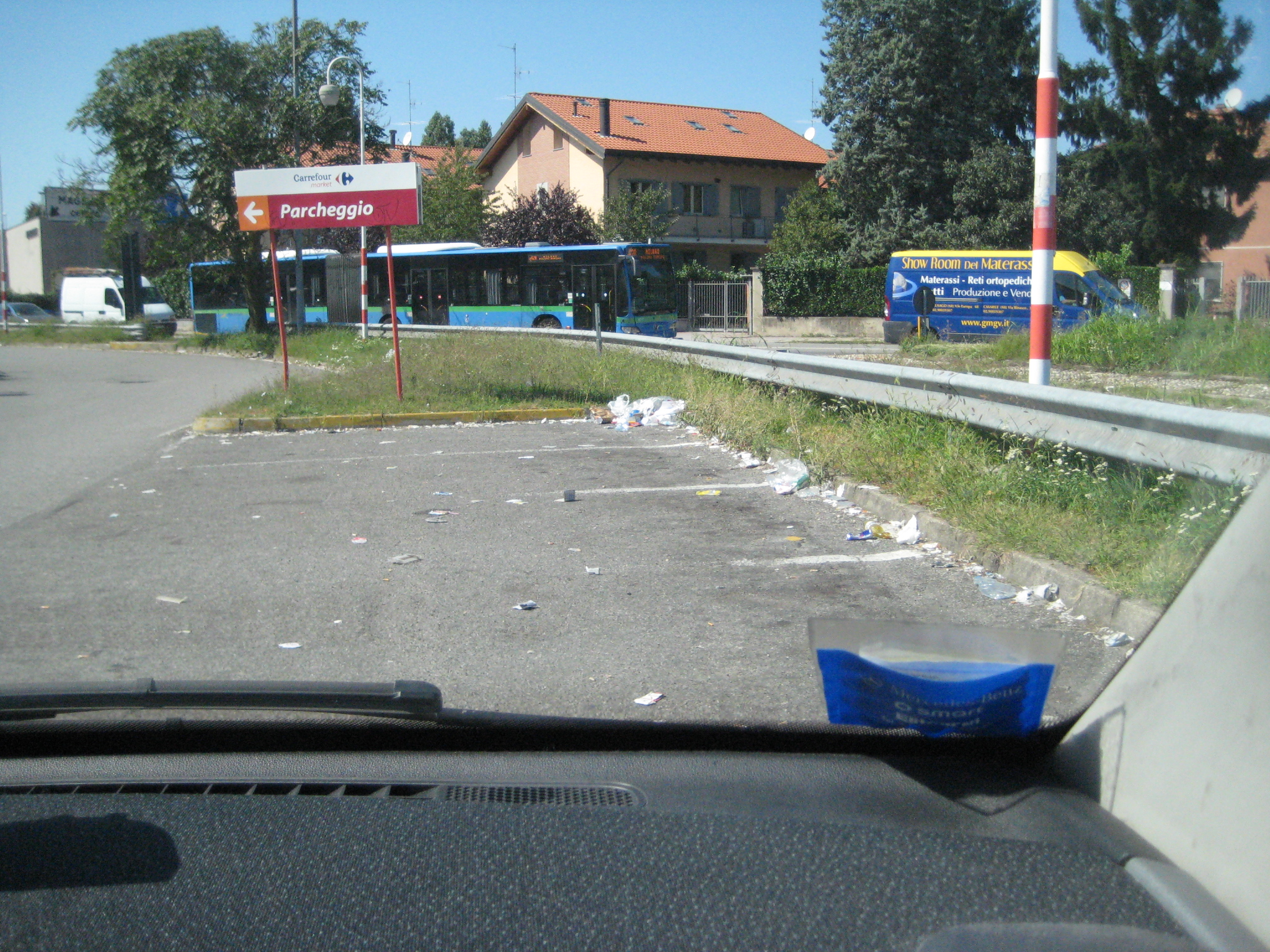 P.S. Un discorso simile lo posso fare anche per il parcheggio della Coop di Bareggio (MI), anche se in questo caso la maggior parte della sporcizia è appena fuori dal parcheggio.
