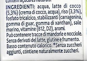 se non fosse che poi leggi gli ingredienti (questi in italiano) e scopri che l’ingrediente principale è l’acqua, seguita dal 5,3% di latte di cocco e del 3,3% di riso. A seguire additivi vari…
