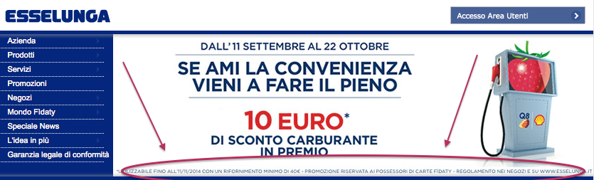 Leggo che l’Istituto di autodisciplina pubblicitaria ha censurato il manifesto di Esseluga che promuove la sconto sul carburante; resto dell’idea che sia un pubblicità ingannevole solo nel senso stretto del termine, ma che in realtà manchi di trasparenza come la maggior parte delle offerte promozionali.