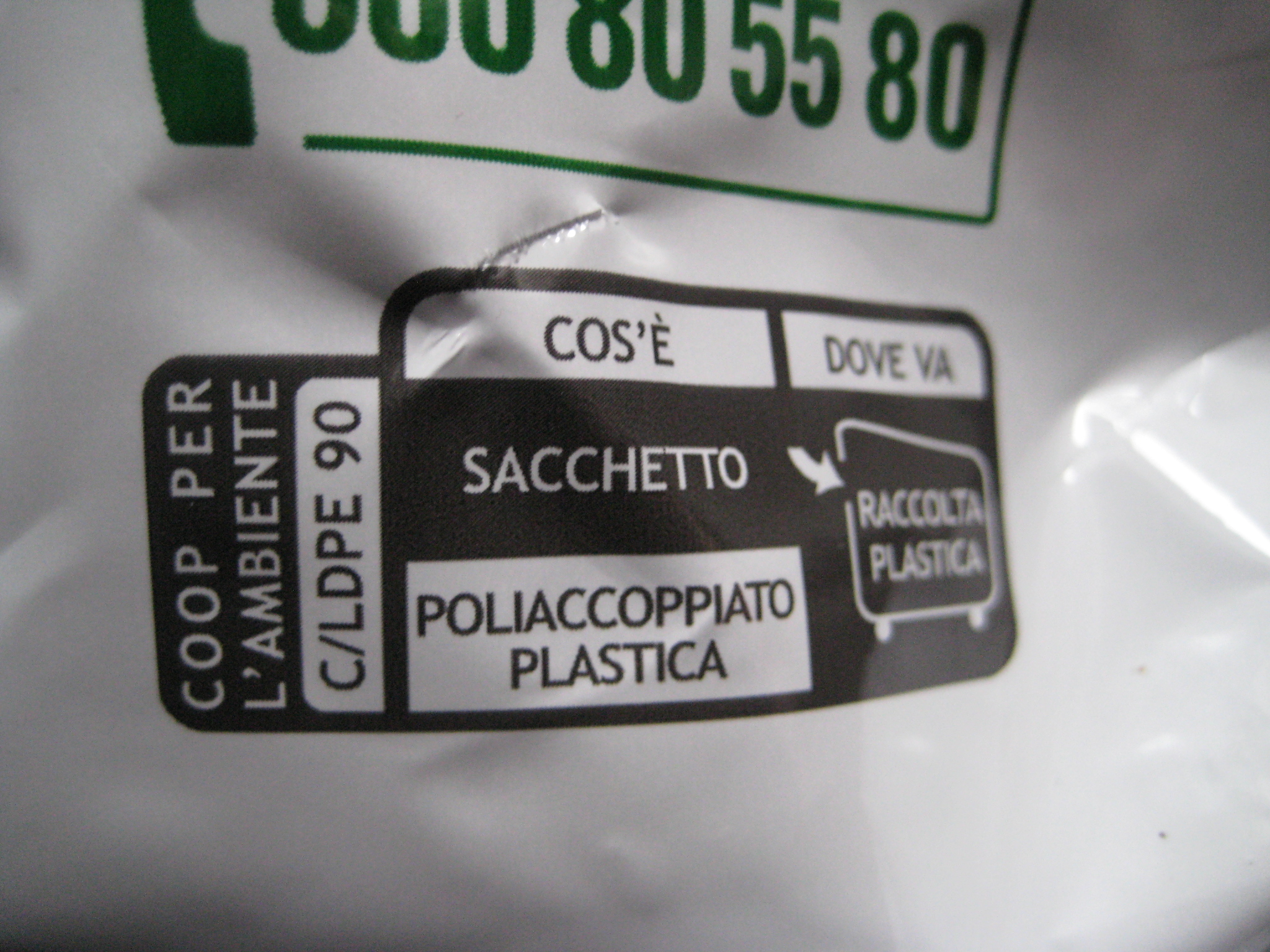 Ecco un altro sacchetto di un prodotto Coop … Che cos’è? Poliaccoppiato plastica. Dove va? Raccolta differenziata.