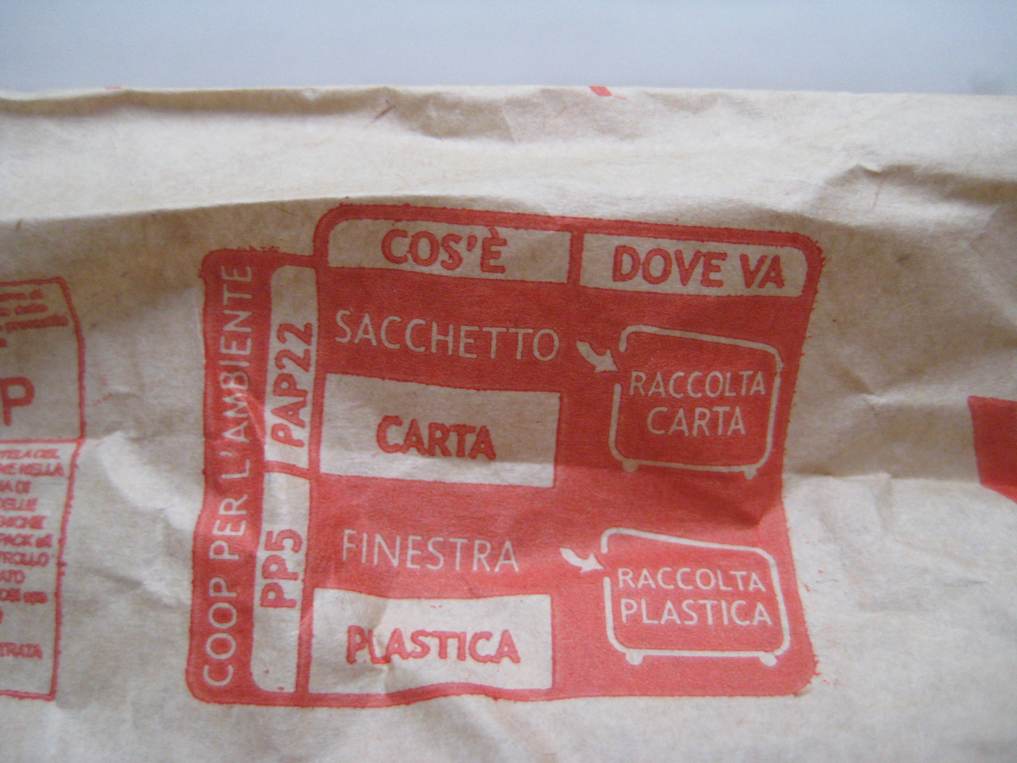 Ad esempio il sacchetto del pane Coop che hai citato. Perché non lo fanno tutto di carta anziché metterci anche la plastica?