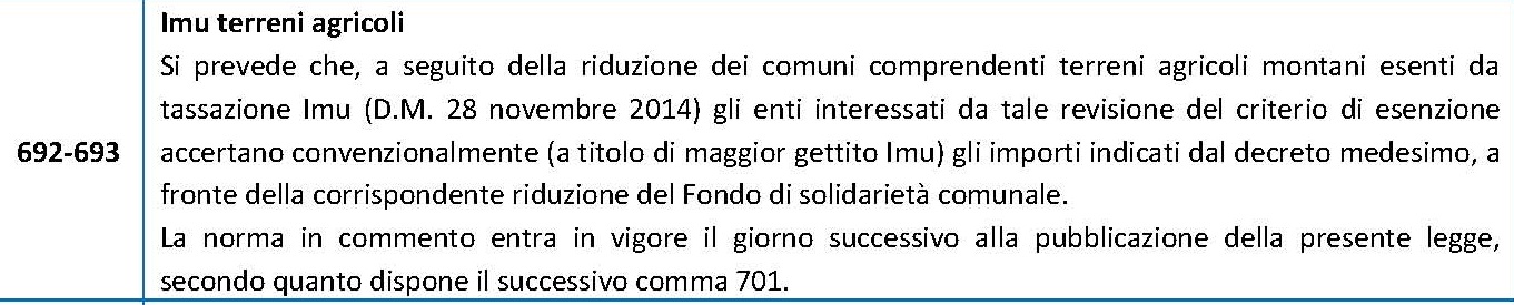 Mi scrive che: La Legge di stabilità per l’anno 2015 (Legge 23/12/2014 n.190, pubblicata sul S.O. n. 99 della Gazzetta Ufficiale del 29/12/2014) è composta da un unico articolo suddiviso in ben 735 commi; le disposizioni, salvo piccole eccezioni (si vedano i commi 701 e 735), entrano in vigore dal 01 gennaio 2015.