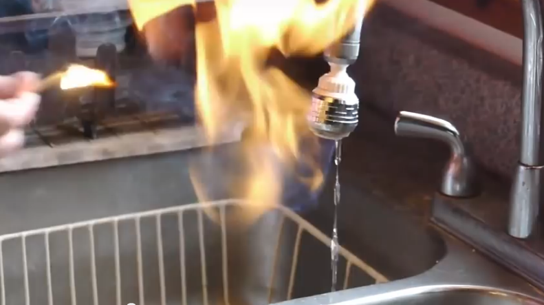 Guarda il video nel quale si mostra la “presenza” del gas nella falda acquifera ovvero dal rubinetto.