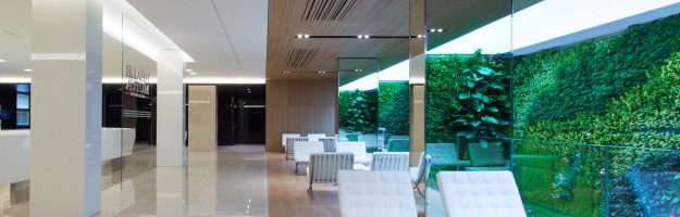 Il sistema verde è stato realizzato dalla Sundar Italia, che si è occupata di studiare le specie migliori per l’ambiente non molto illuminato.