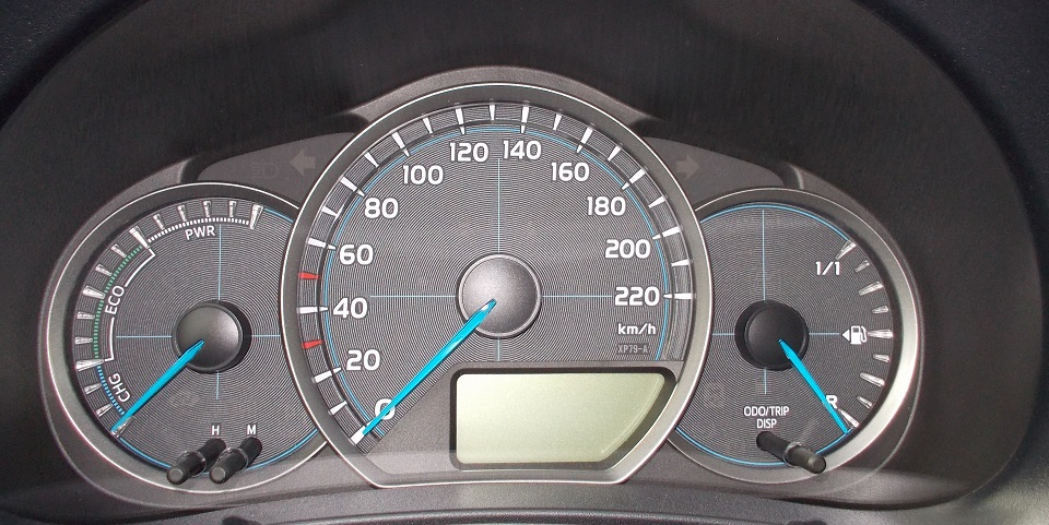 Piacevole alla vista il quadro strumenti dove non è presente il contagiri, ma l’indicatore del sistema ibrido sul quale cade spesso l’occhio durante la marcia, ma ci arriviamo dopo. Al centro il tachimetro e sulla destra l’indicatore del livello del carburante.