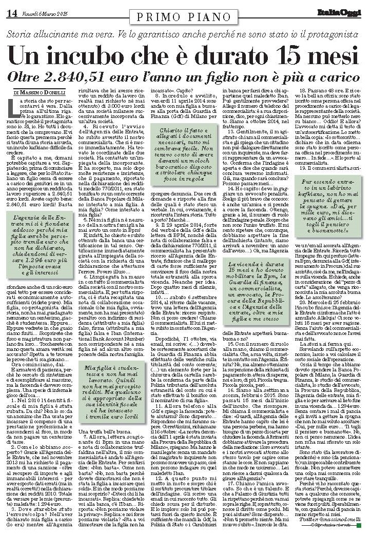 La vicenda è durata 15 mesi e ho dovuto mobilitare la Bpm, la Guardia di finanza, un commercialista, un avvocato, la Procura della Repubblica e l’Agenzia delle entrate, oltre a mia figlia e me stesso.