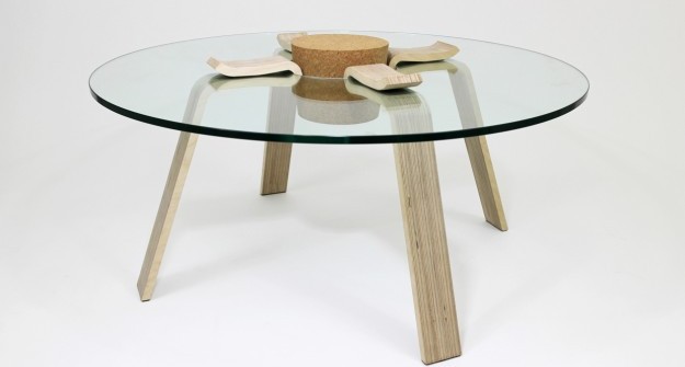 Le linee della betulla, la porosità del sughero e la qualità del vetro temperato supertrasparente rendono il tavolo da caffè progettato dal designer coreano un pezzo di design sostenibile, elegante ed originalissimo.