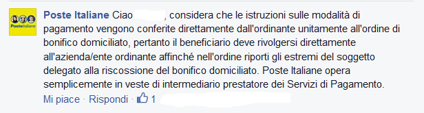 Rientrato a casa ha contattato Poste italiane su Facebook dove gli è stata data una non-risposta, invitandolo a contattare il numero verde cosa che ha fatto per sentirsi dire, in pratica, che Poste italiane non accetta la classica delega che ognuno di noi presenta nei vari uffici, ma vogliono una delega legale ovvero il malcapitato Testimone dovrebbe andare con suo padre da un notaio, che di certo non lavora gratis e spendere chissà quanto per avere la delega che poi lo autorizzi ad incvasse i 17 €.