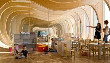 L’asilo sostenibile dai bambini viene chiamata “la balena” per la forma tondeggiante degli interni, pensati per garantire la massima sicurezza e tutto il comfort possibile ai piccoli studenti.