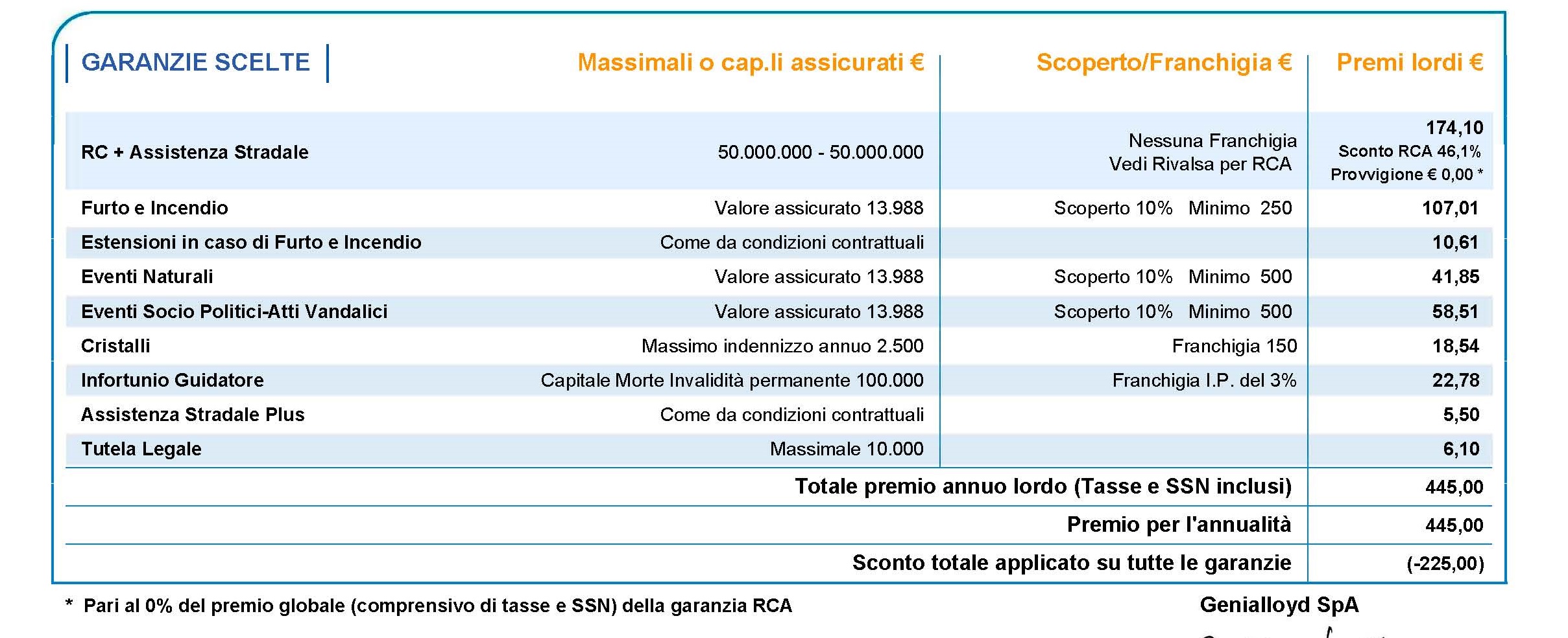 Alcuni giorni fa però è arrivata la proposta di rinnovo e l’importo per Rca più una serie di polizze aggiuntive è di 451 € come puoi vedere nel detttaglio:
