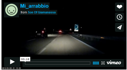 E infatti si becca una sventagliata di abbaglianti, oltre ad una serie di epiteti a scelta, che però non potete sentire perché ho pudicamente tolto l’audio.