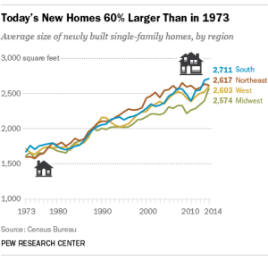 I dati dei recenti studi mostrano come dagli anni ’80 ad oggi le dimensioni delle case americane siano cresciute del 50%.
