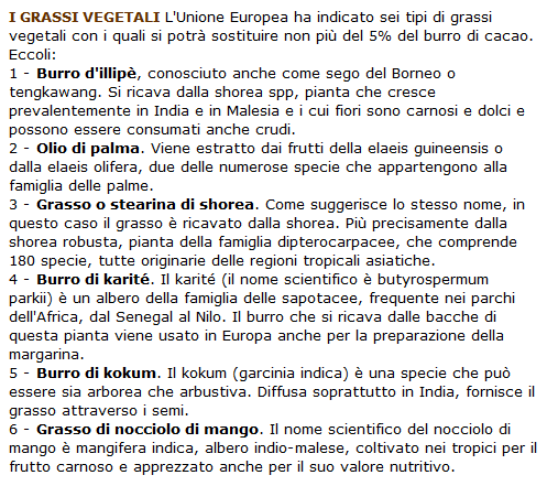 Se nelle lunette ci fosse stato il cioccolato e non un surrogato, le cose sarebbero state diverse, visto che la UE ha autorizzato l’utilizzo di alcuni grassi nella preparazione del cioccolato e più esattamente, come spiega questo articolo del Corriere: