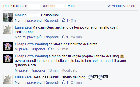 22 marzo 2016 – Luisa Zeta ha ricevuto e subito indossato il suo anello 🙂