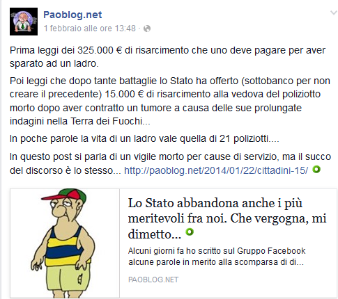 Senza dimenticare poi il lassismo delle istituzioni che mo strano i pugni solo per accanirsi contro le persone perbene…