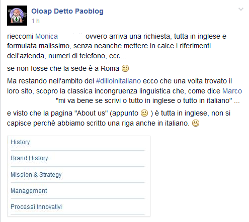 >> la pagina About Us e’ in inglese, non si capisce perche’ abbiano scritto una riga anche in italiano