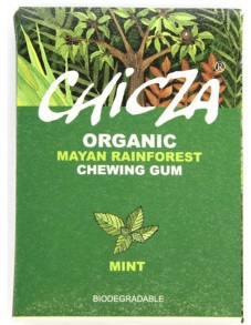 Per quanto riguarda Chizca, gli ingredienti sono questi: succo di canna da zucchero evaporato in polvere* 37%, gomma base* 35%, glucosio* 24%, sciroppo di agave* 3%, aroma di menta*. * Da agricoltura biologica