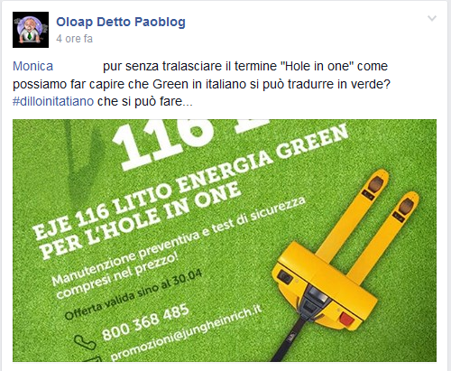 Probabilmente l’hanno riciclata da pubblicità equivalente in inglese? Oppure hanno come target specifico quello dei golfisti!!