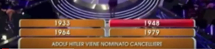 la prima concorrente risponde: 1948 e poi via via… lo sfacelo. E nella domanda successiva ecco lo scivolone su Mussolini.