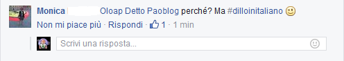 Mia sorella Monica (che peraltro è poliglotta, visto che parla tedesco, inglese, russoo e sta studiando il cinese) non perde un colpo, quando si tratta di inglese farlocco o, come in questo caso, di contaminazioni assurde.