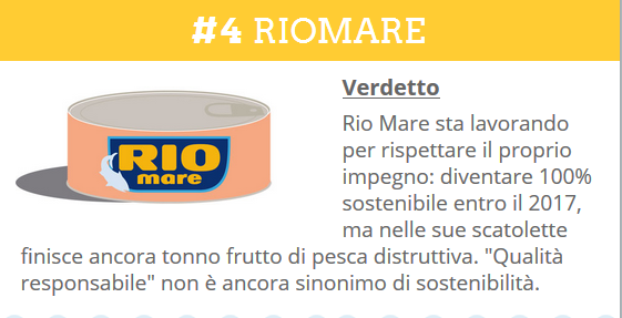 Visto che si parla di tonno come è posizionato Riomare nella classifica di Greenpeace, per quanto riguarda la sostenibilità?