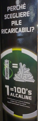 Un lettore mi ha mandato la foto di un espositore di batterie ricaricabili visto in un supermercato.