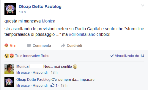 Ed oggi ho trovato la puntuale analisi di Licia Corbolante di Terminologia che, detto per inciso, si è aggiudicato il secondo posto del concorso internazionale Top 100 Language Lovers 2016 (#TLL2016), organizzato da bab.la e Lexiophiles per selezionare i migliori blog linguistici,