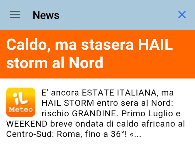 Ieri l’App ilMeteo manda un allerta causa rischio di Hail storm …