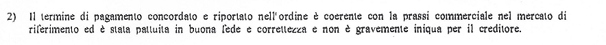 1- Il termine di pagamento non è concordato, ma imposto ed infatti il cliente in questione mi ha detto che: