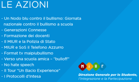 Questa immagine riassume le 10 azioni del Piano nazionale per la prevenzione del bullismo e del cyber-bullismo a scuola 2016/2017 del Ministero dell’Istruzione: