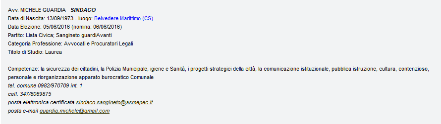 Sindaco della città di Sangineto