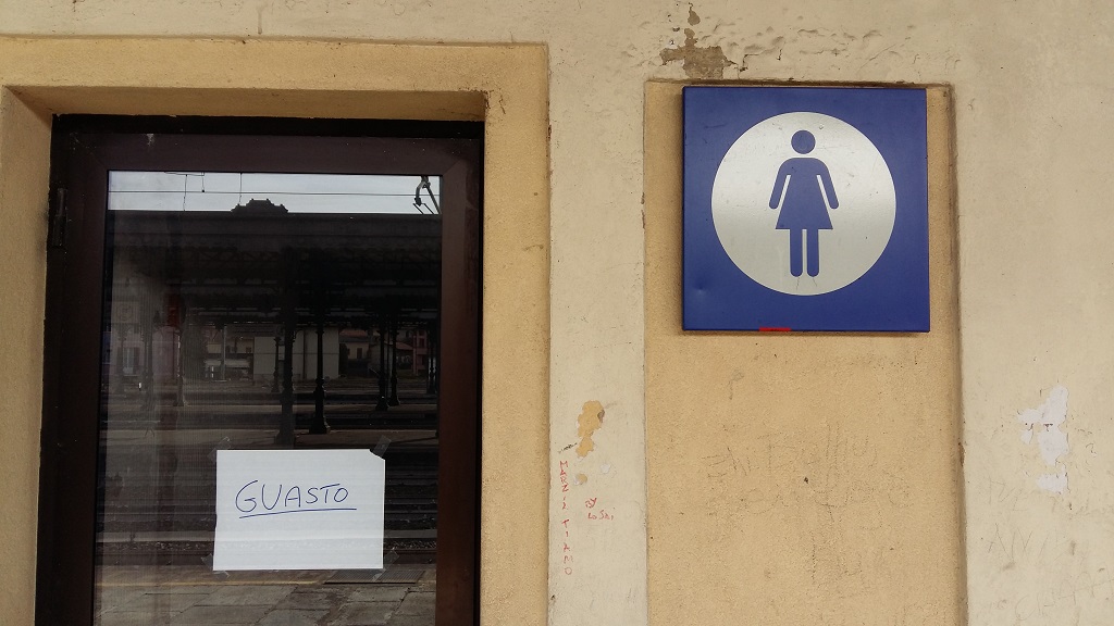 A quel punto, considerando che di fronte c’è la stazione ferroviaria abbiamo avuto la pensata di andare in stazione, dove i bagni ci sono sicuramente, anche se forse in condizioni peggiori di quelli automatici.