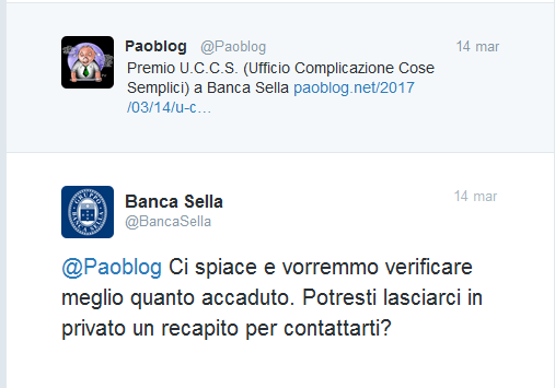Cominciamo il post con un dialogo surreale avuto con il servizio clienti di Banca Sella.