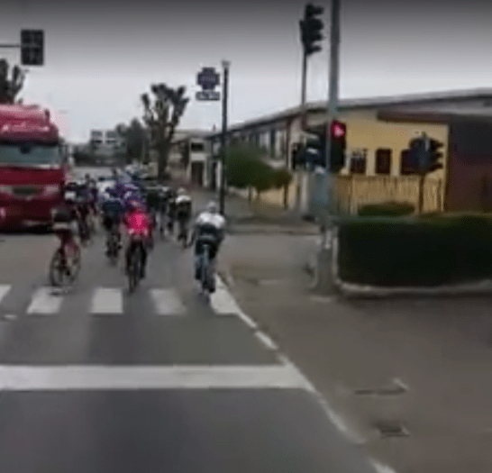 Gruppo di ciclisti imbecilli passa con il rosso oppure TIR assassino falcia dei ciclisti?