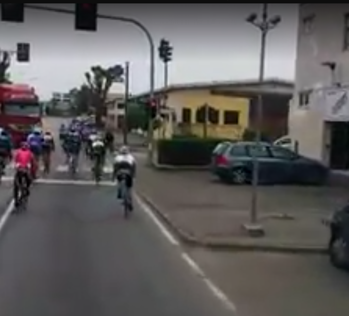 Gruppo di ciclisti imbecilli passa con il rosso oppure TIR assassino falcia dei ciclisti?