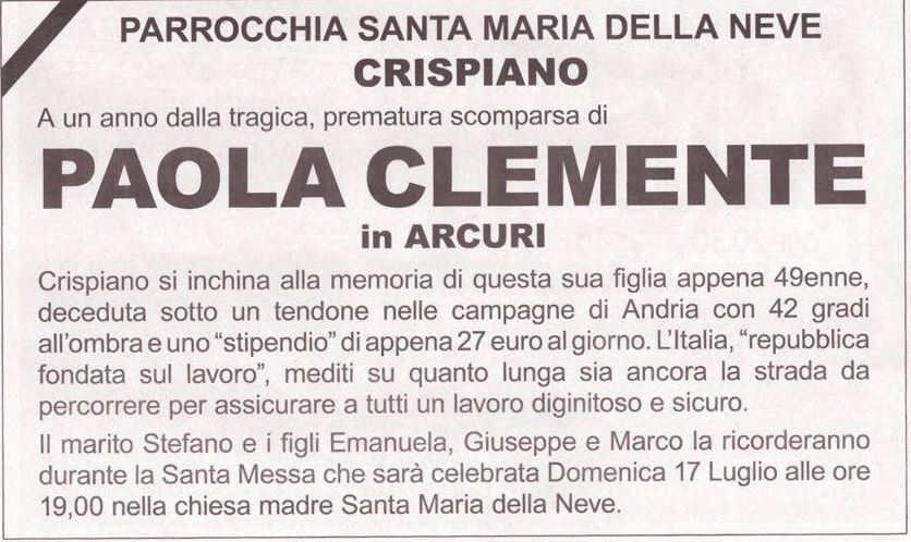 Però se vai su Google e cerchi l’immagine di Paola Clemente, la donna morta per la fatica (!) ecco che ne trovi quante ne vuoi.