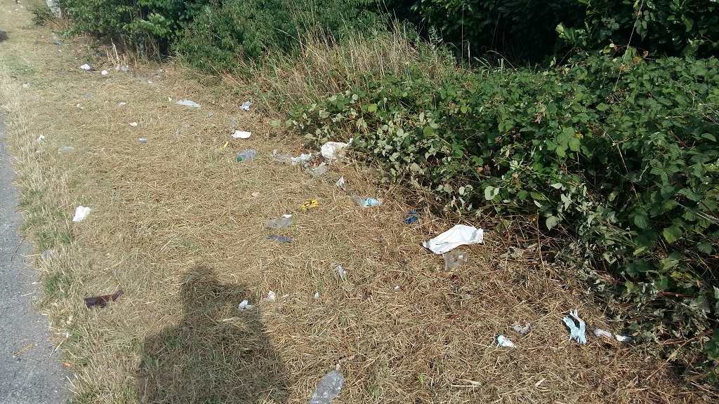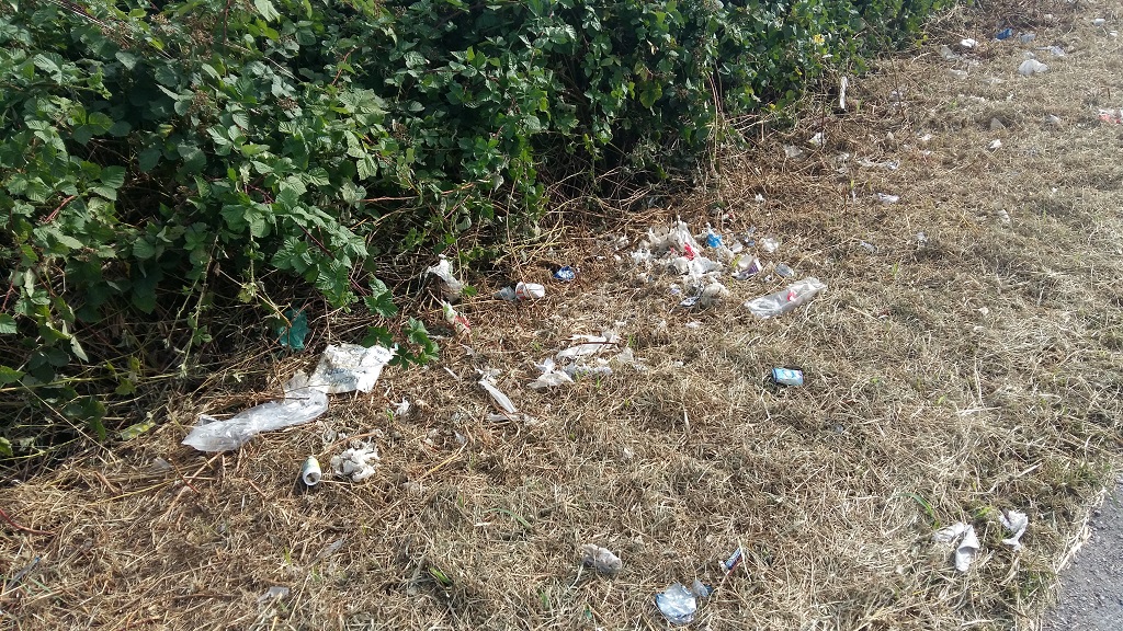 La scorsa settimana è stata tagliata l’erba sui bordi della Strada Provinciale ex Strada Statale 11 ed è stato come sollevare un tappeto e vedere cosa c’è sotto, perchè l’erba nascondeva il mare di rifiuti di plastica gettati dai vari imbecilli che passano.